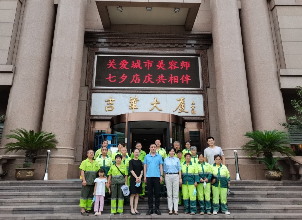 吉華大廈積極投身公益事業(yè),以創(chuàng)新形式承擔(dān)社會責(zé)任。其中圍繞關(guān)愛環(huán)衛(wèi)工人項目,已持續(xù)多年。為表達(dá)對環(huán)衛(wèi)工人的關(guān)愛和敬意,感謝他們?yōu)閯?chuàng)建全國文明城市做出的貢獻,吉華大廈在炎炎夏日為轄區(qū)環(huán)衛(wèi)工人送去清涼慰問;七夕節(jié)期間,吉華大廈聯(lián)合街道社區(qū)開展 “關(guān)愛城市美容師?七夕店慶共相伴”活動,為環(huán)衛(wèi)工人提供免費早餐。通過公益活動,吉華人踐行著誠信盡責(zé)的價值理念,彰顯國企擔(dān)當(dāng)。
