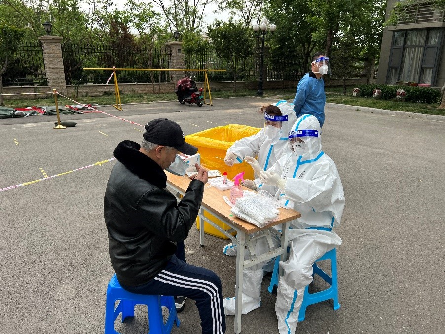 “您好,請出示健康碼”,“請這邊排隊(duì)檢測”這是青年志愿者劉志超在社區(qū)說的最多的兩句話,他邊維護(hù)核酸檢測隊(duì)伍秩序,邊控制采樣人數(shù),一直忙碌到晚上10點(diǎn),才結(jié)束一天的戰(zhàn)斗。